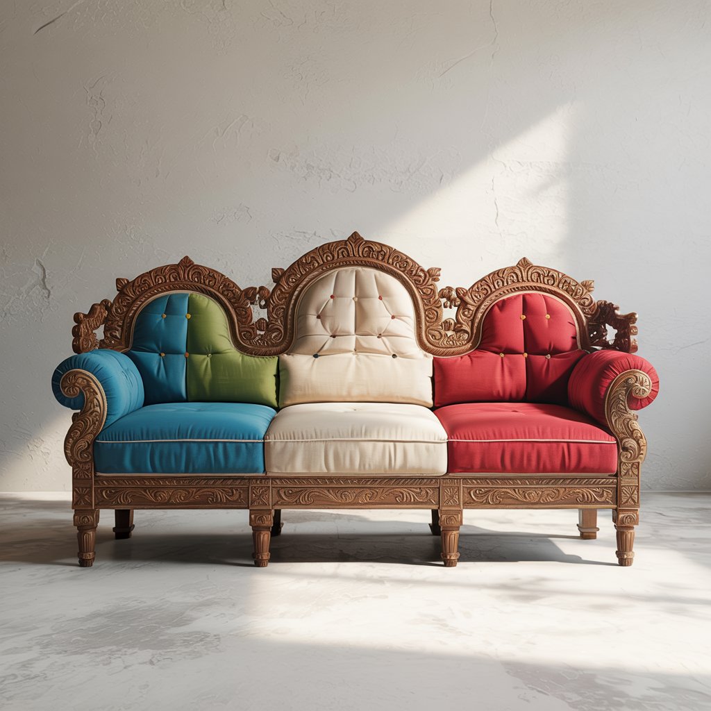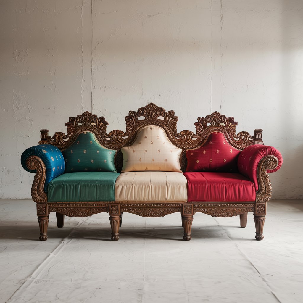 Inspired by vintage royal furniture, this sofa set features bold hand carving.