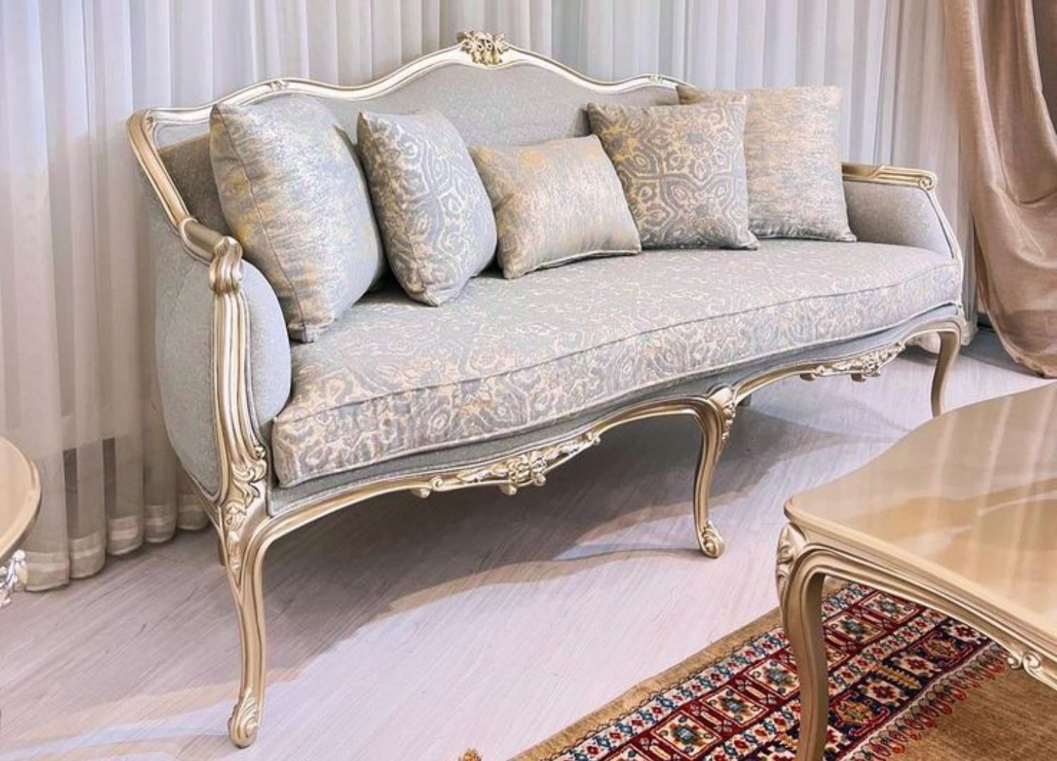 Bring home Victorian charm with this beautifully handcrafted sofa set. The finely carved wooden frame and luxurious upholstery provide an opulent seating experience that is both comfortable and visually striking.